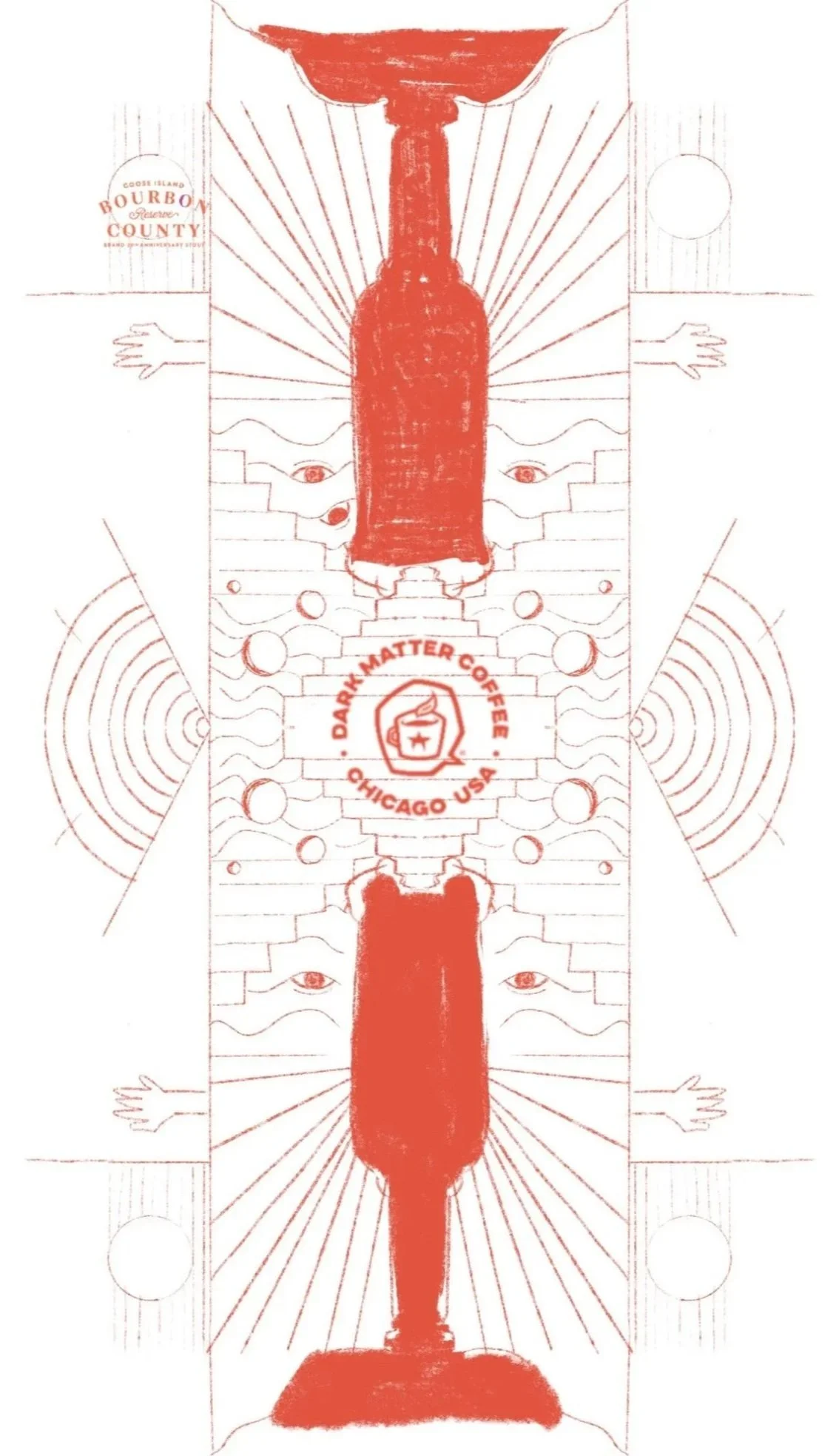 I drew on Dark Matter’s “out-of-this-world” visual language with psychedelic illustration, rich textures, and cosmic motifs. Then, I paired it with the strong, established Bourbon County framework.