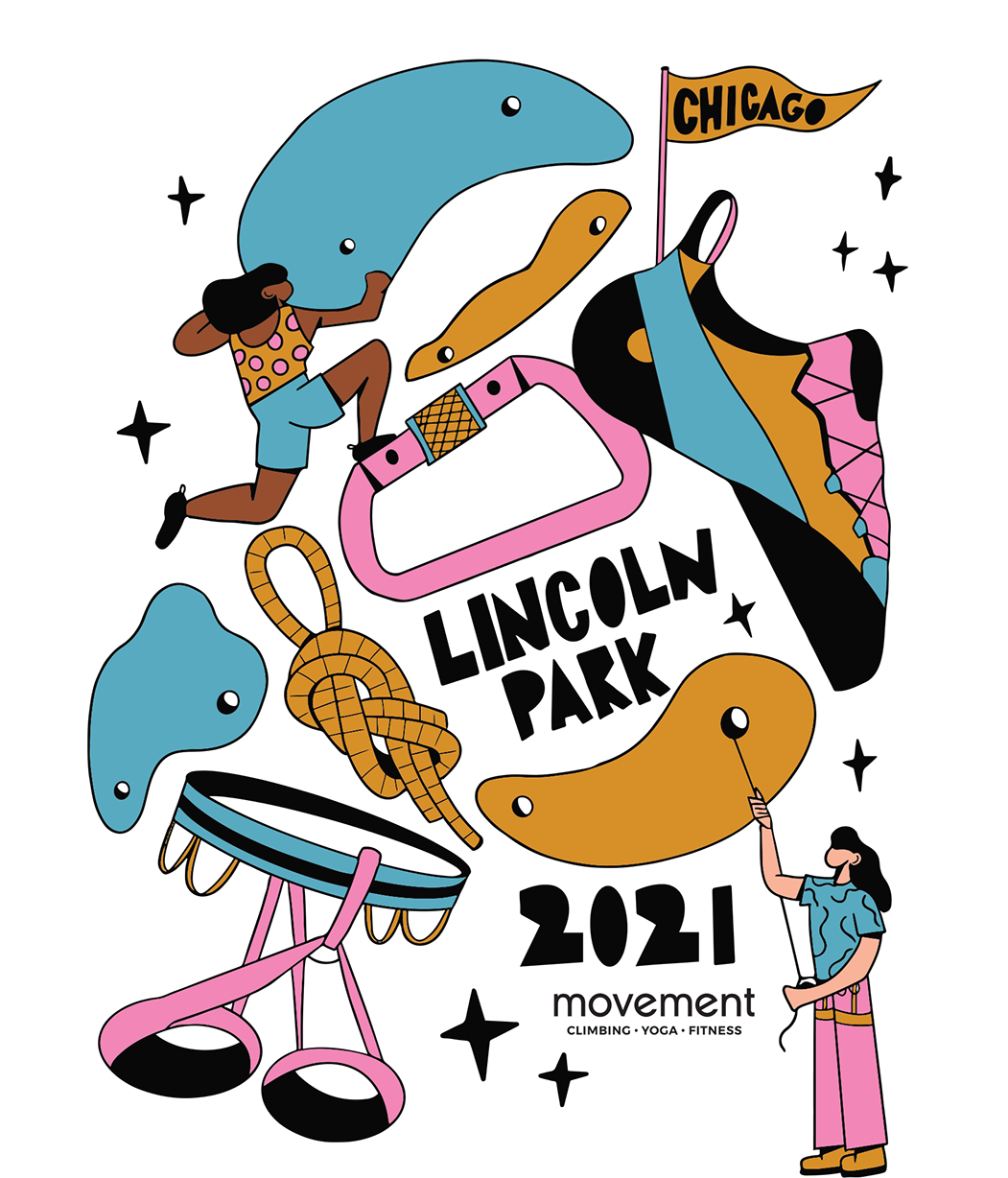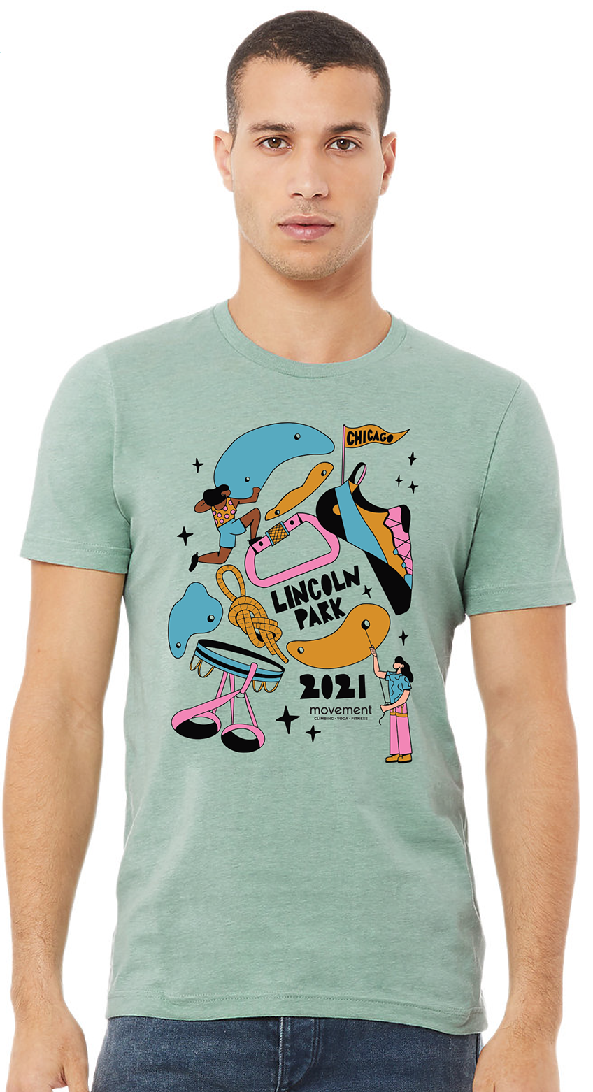 Grand opening t-shirt design for the Movement Lincoln Park Chicago gym location.
