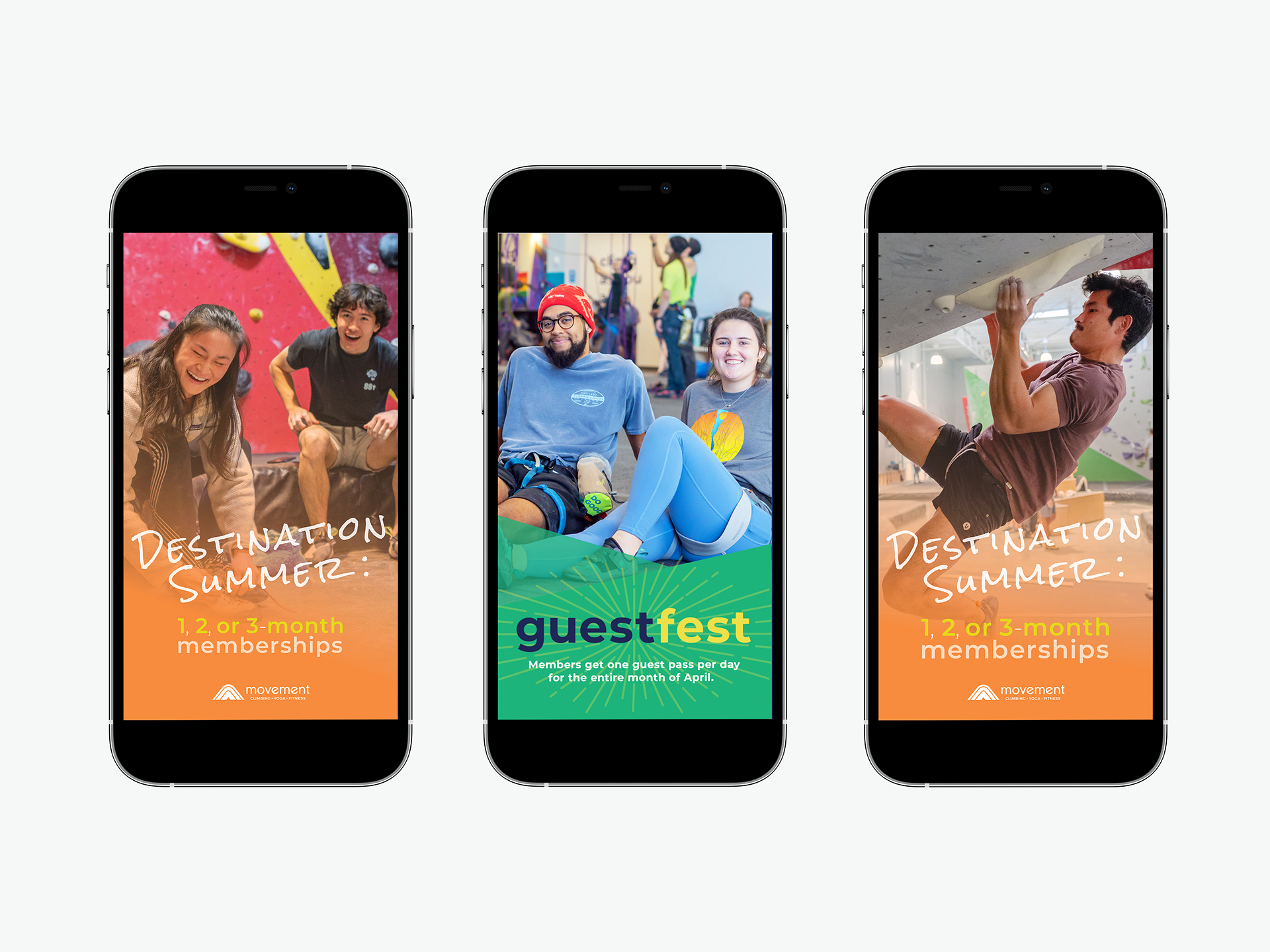 Promotional materials designed for Movement Gyms — a fitness brand with energy, movement, and community at its core. I created visuals for print and digital promos to help them engage their audience, boost attendance, and elevate their brand visibility.